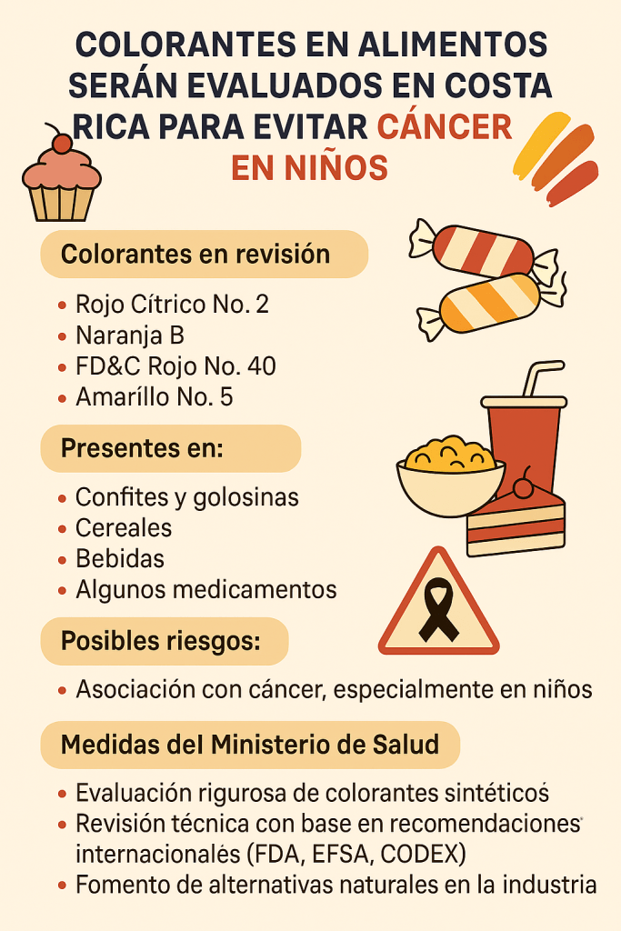 El Ministerio de Salud de Costa Rica anunció que evaluará rigurosamente el uso de colorantes sintéticos en productos alimentarios, como parte de un esfuerzo preventivo para proteger la salud pública, en especial la de los niños.